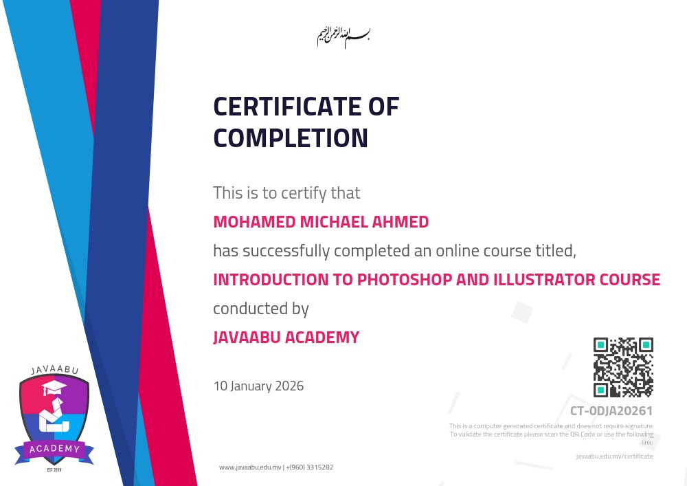 has completed the "Introduction to Photoshop and Illustrator Course" course on 10 January 2026